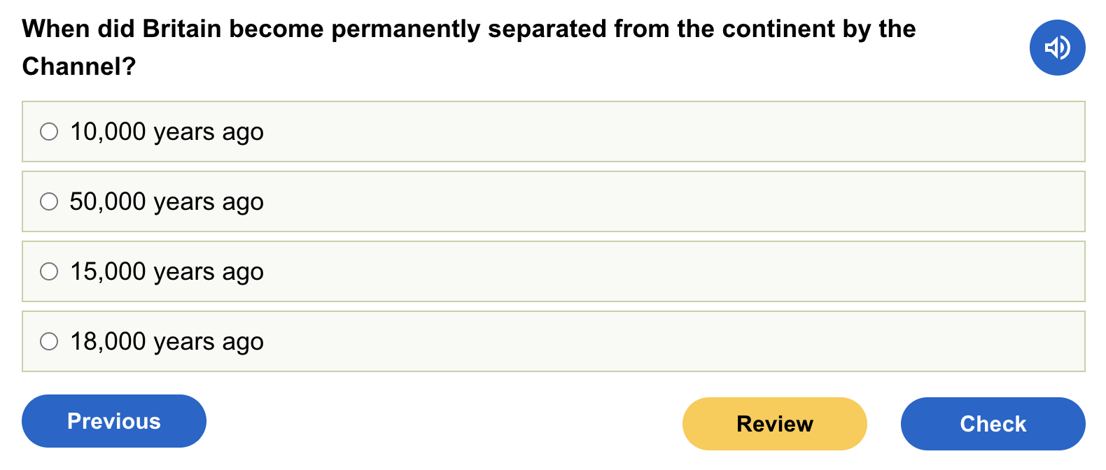 10. When did Britain become permanently separated from the continent by the Channel? (Essential knowledge of how to be a good citizen in the British society of today.)